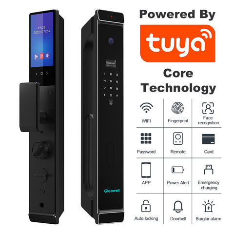 फेस रिकग्निशन लॉक स्वचालित बायोमेट्रिक फिंगरप्रिंट ऐप वाईफाई कार्ड 3 डी फेस डिटेक्शन स्मार्ट डोर लॉक